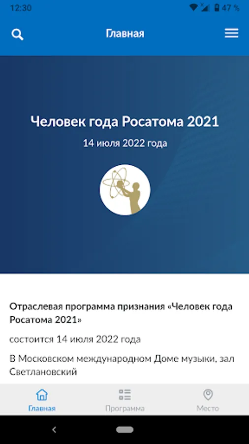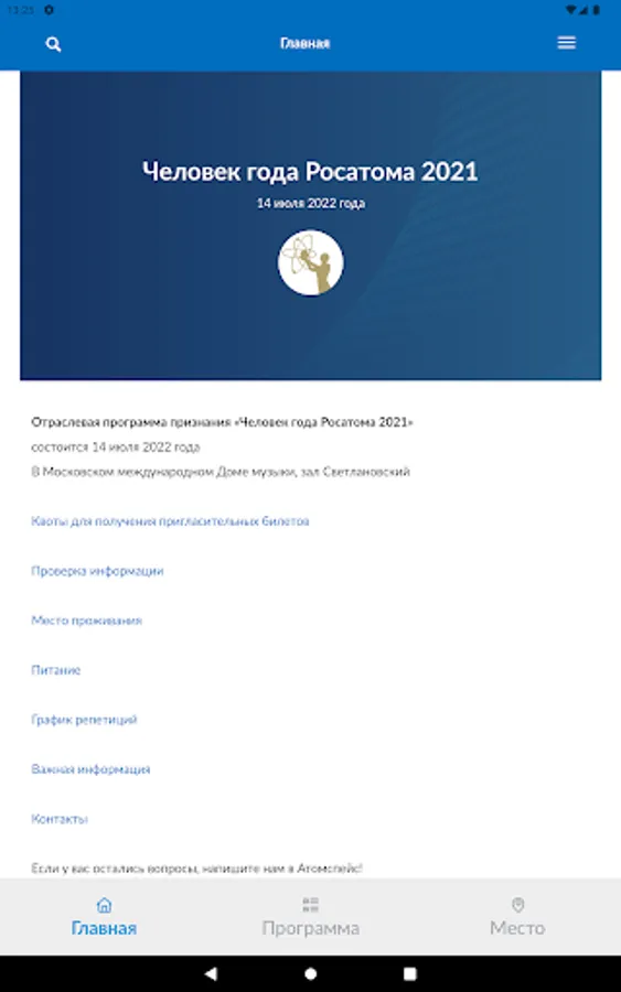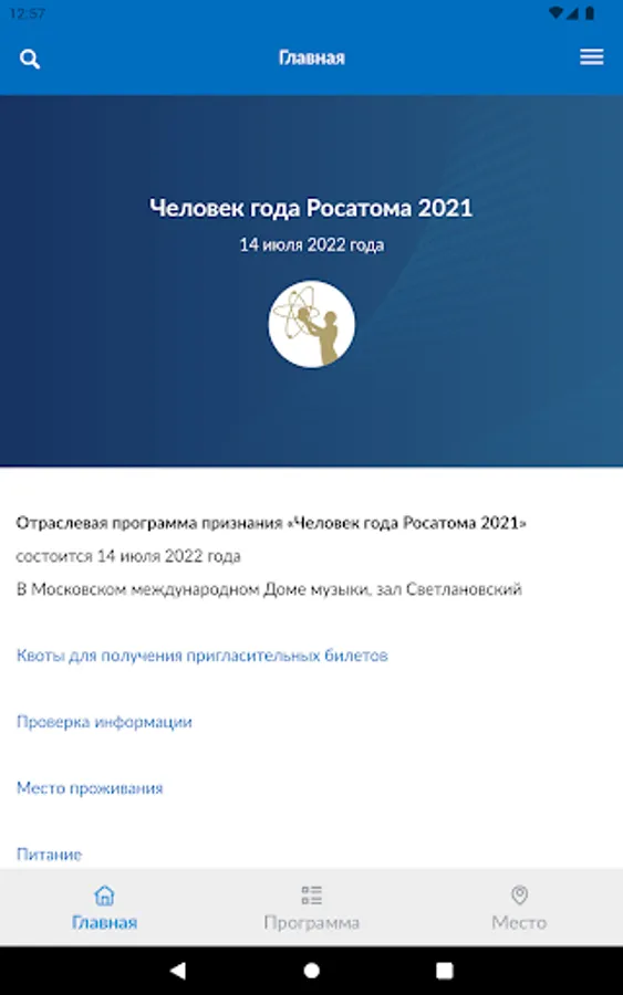 This is a free application for participants in the award ceremony of the industry recognition program "Rosatom's Person of the Year".