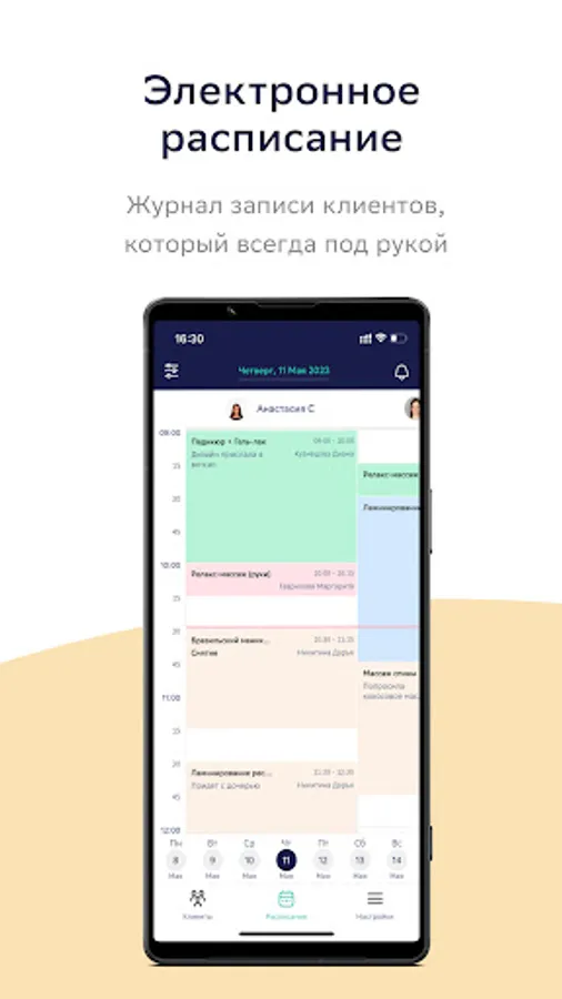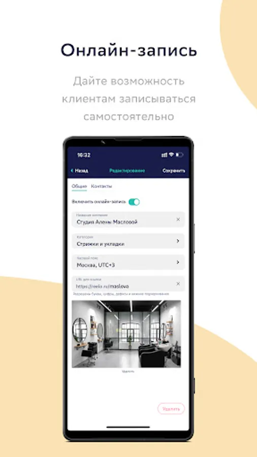 Reelo allows you to create a link to an online entry that can be posted on the site, social networks, maps and other sites, or sent directly to customers. In addition, the system allows you to send notifications about entries, remind customers of upcoming visits, manage your customer base, analyze sales, and much more.