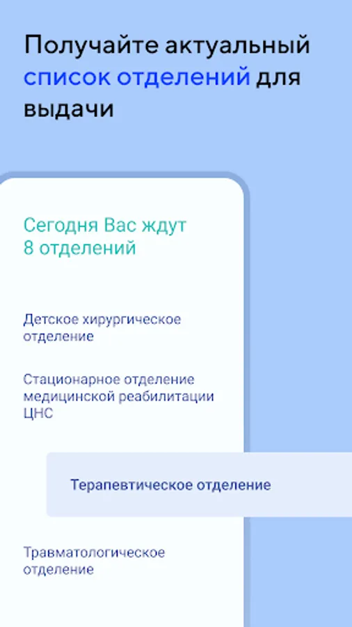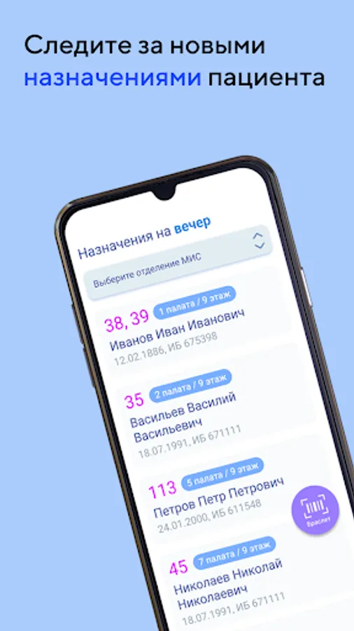 The guard nurse receives up-to-date information on the placement of the patient: floor, department, ward, bed.