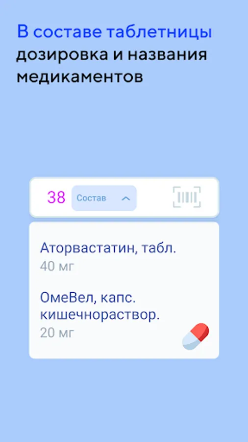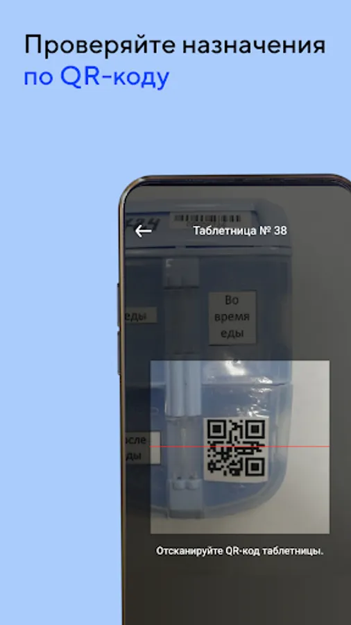- Checks the composition of the pill box (container with medicines) and the prescribed dosage using the QR code