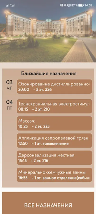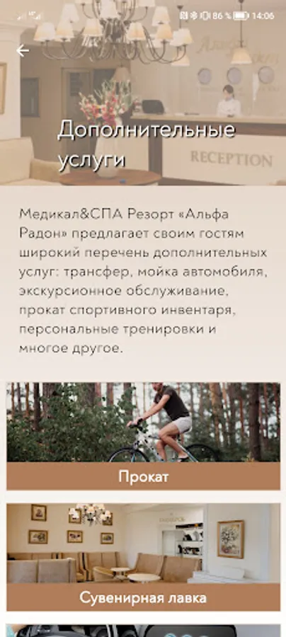 The mobile application for guests of the Medical & SPA resort "Alfa Radon" allows you to quickly receive information about promotions and special offers, appointments with doctors and procedures, time and place of procedures, receive notifications about upcoming procedures and changes in the schedule.