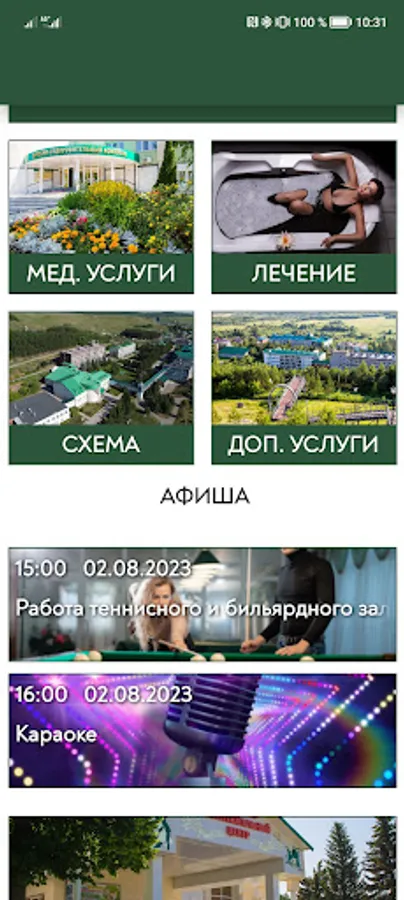 The mobile application for guests of the sanatorium "Bakirovo" will allow you to receive timely information about medical appointments, current events, find out the cost of paid medical services, see the scheme of the sanatorium and get acquainted with additional services.