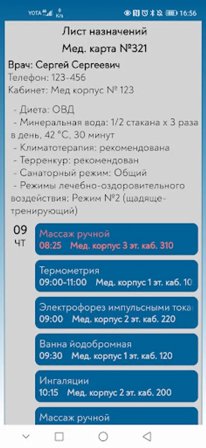 This is a demo application for evaluating the possibility of using such an application for guests of the sanatorium.