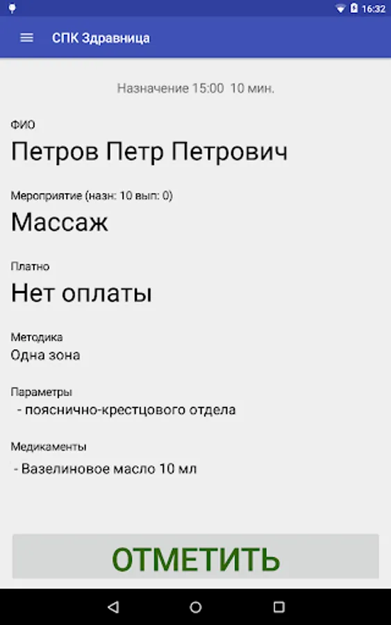 The application allows you to view the appointments made and make notes on the implementation of activities. Information about time, parameters, status of payment of appointment is available.