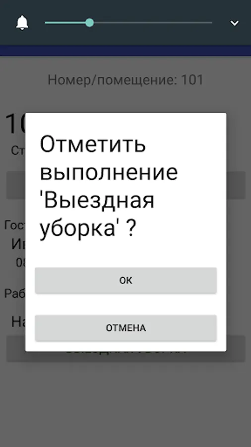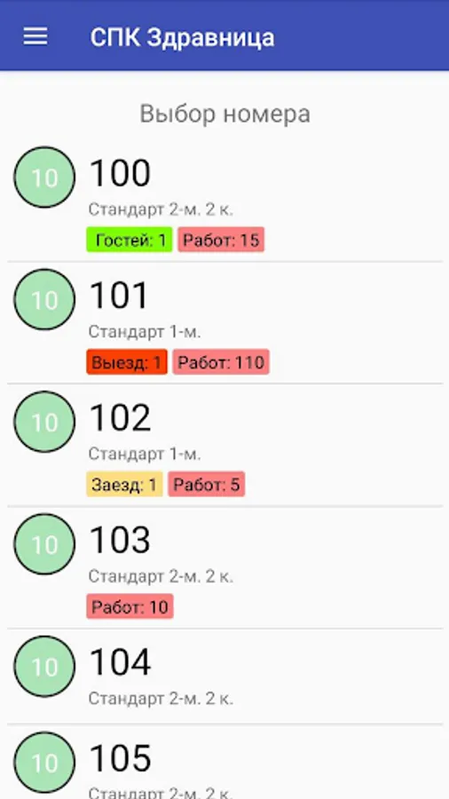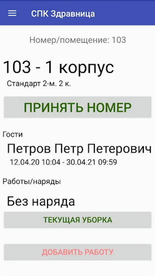 Mark the status "Number accepted" when guests check out, information on the status of the room is available at the reception.