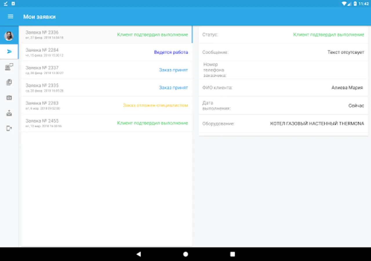 The new application comes with the status of "Order accepted" and is accompanied by a push-notification (at the same time, an alert comes to the client that his inquiry found Specialist). If you are willing to accept the order, press "Confirm" (the status of the application with the changes, "Order confirmed technician").