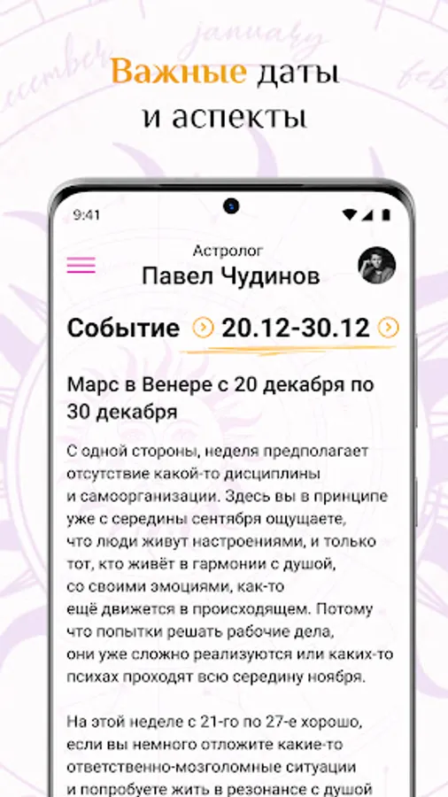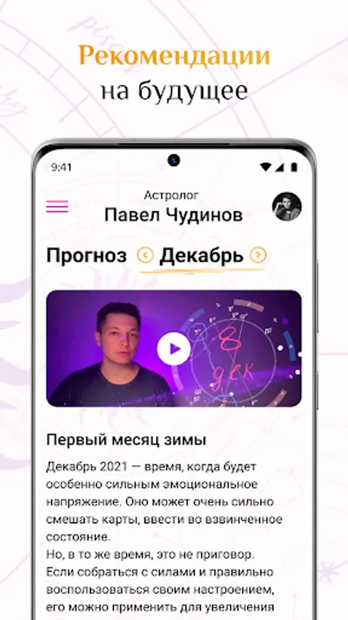 Pavel Chudinov's astrological forecasts relate to all areas of life - relationships, finances, business and partnerships, compatibility and are always accurate in their predictions.