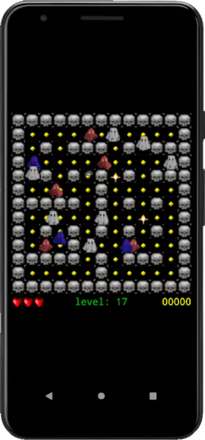 π» The levels involve several types of ghosts: red, blue, and gray. Gray ghosts are the most powerful and can periodically produce more ghosts and flashing stars; one should beware of meeting them.