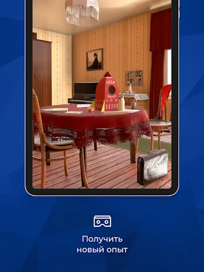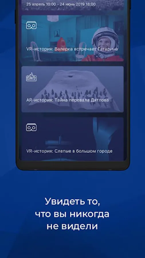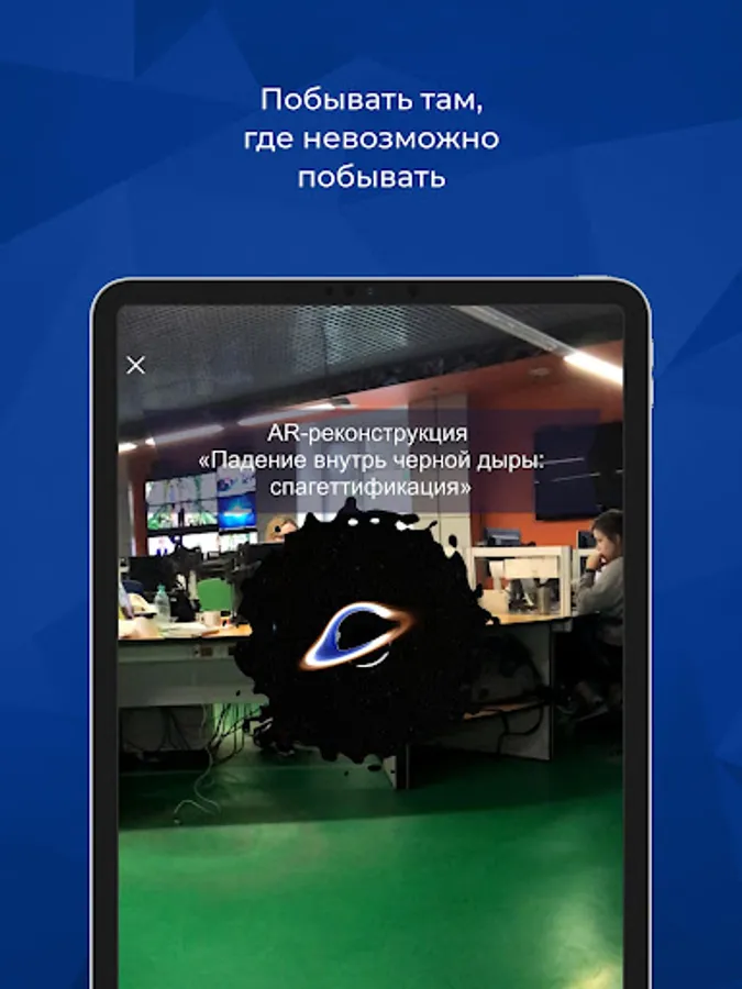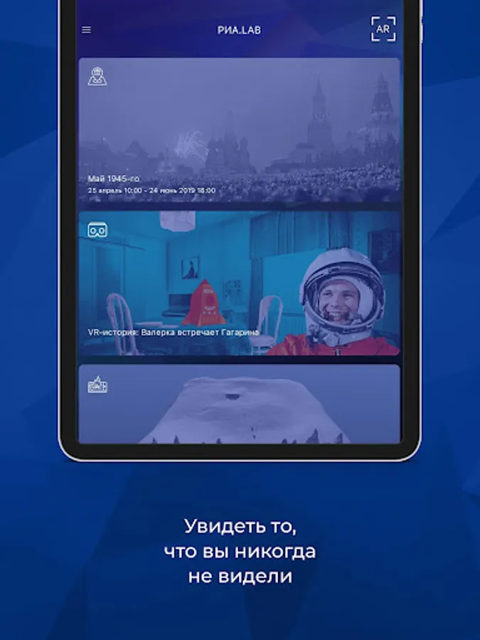 In the app you will find projects in augmented reality and virtual reality. You can try the simulator of the Lunar Base, go back in time, meet Yuri Gagarin, look into the black hole.