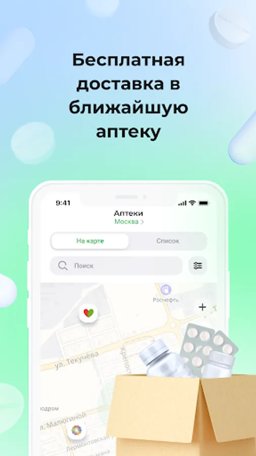 You can book goods by pressing just one button, knowing the exact prices in pharmacies, and pick up orders at the nearest pharmacy at a convenient time for you. All delivery locations are conveniently displayed on the map. We also have a “pharmacy delivery” service - get your medicine without leaving your home. Medications at home are especially relevant at the present time.