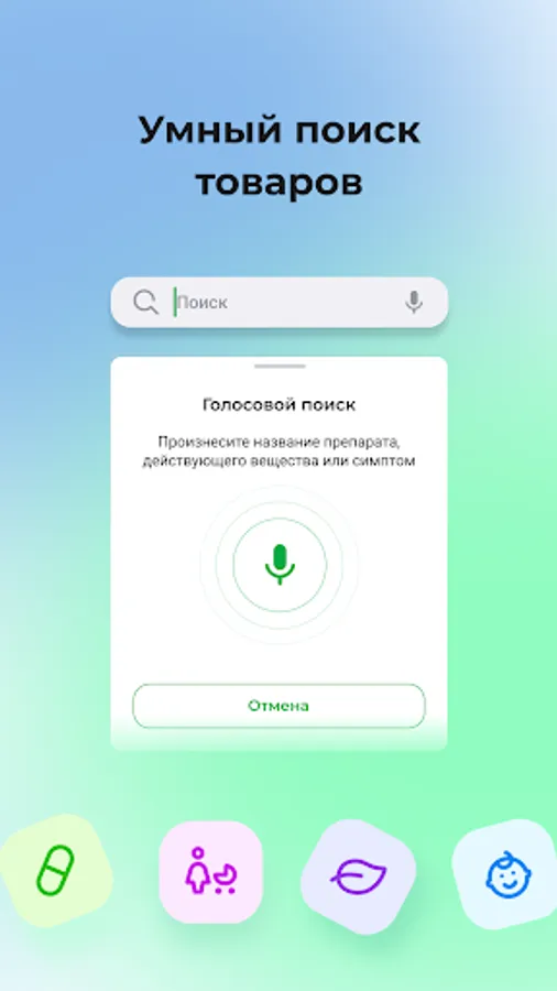 Smart and voice search, allow you to quickly find the right drugs in the catalog. In addition, you can quickly find medicines based on symptoms.