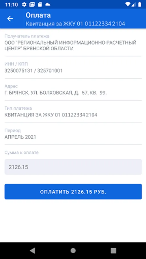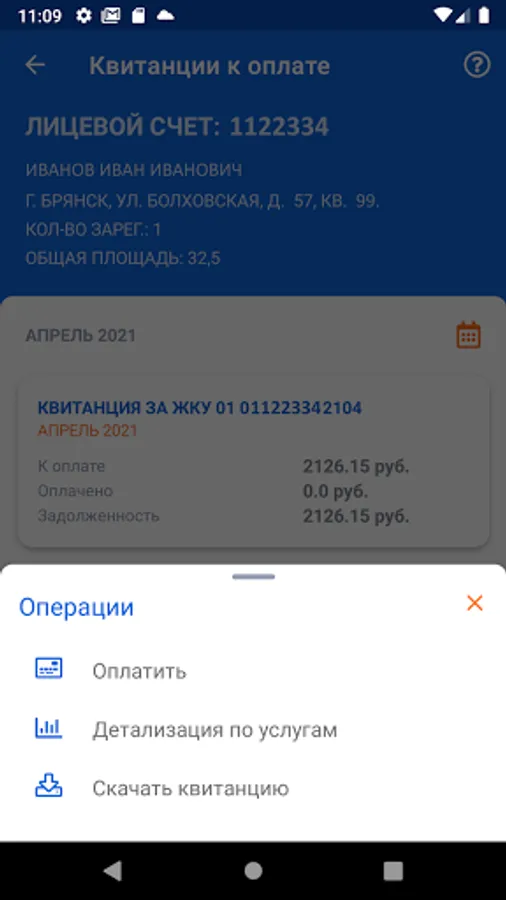 A mobile service for paying for housing and communal services and other services, viewing issued receipts, transmitting readings of the IPU, as well as obtaining information about housing and communal services on your personal account without leaving your home.