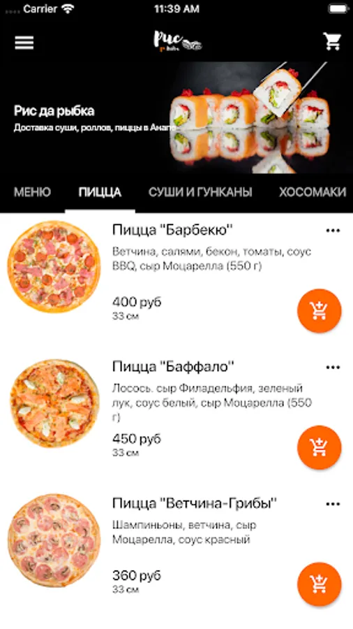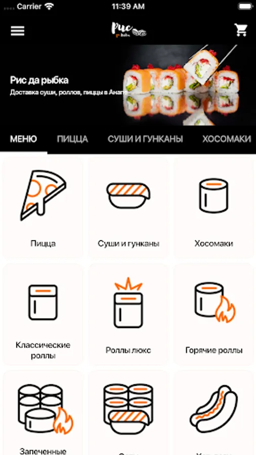 Application for ordering delivery of sushi, rolls and pizza in Anapa.