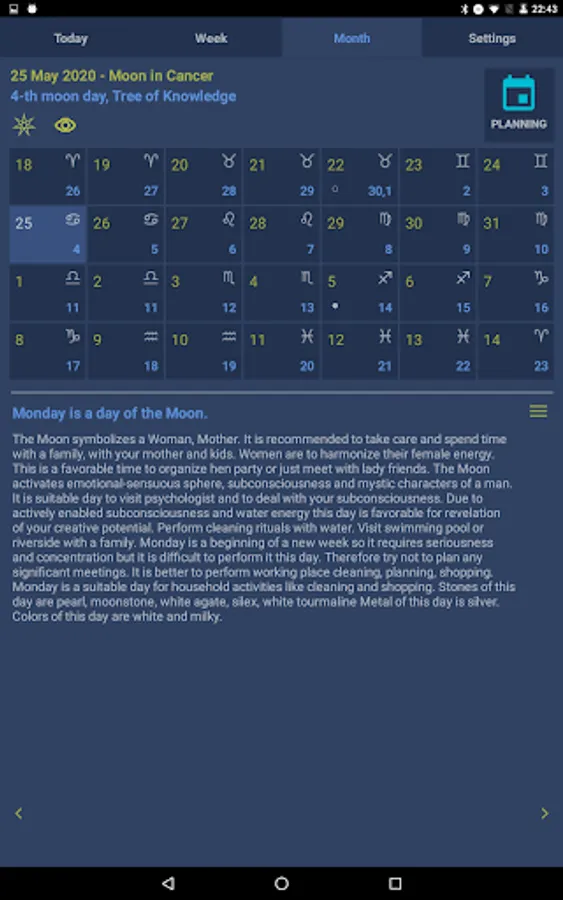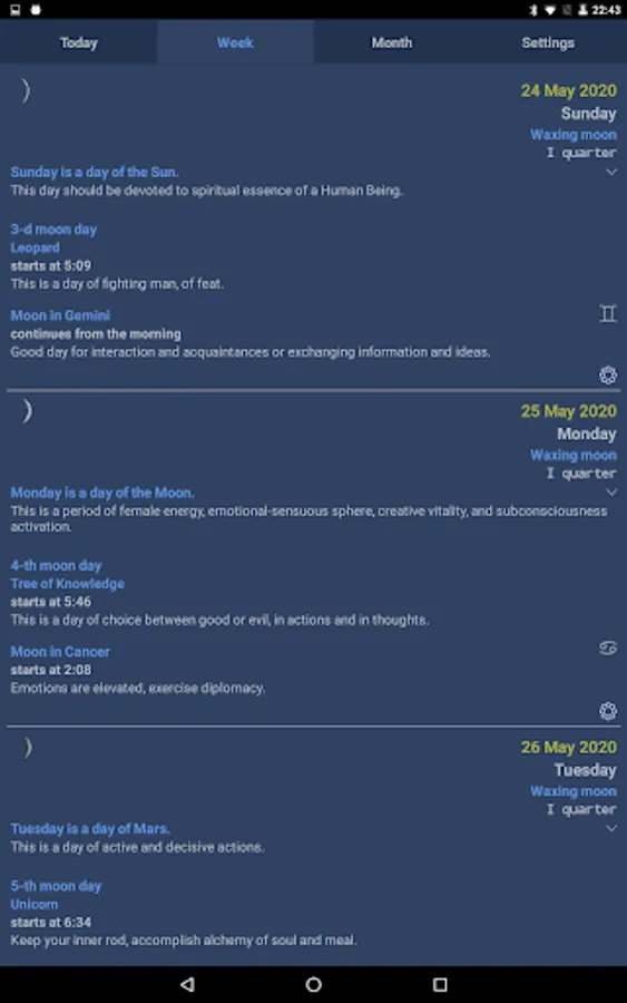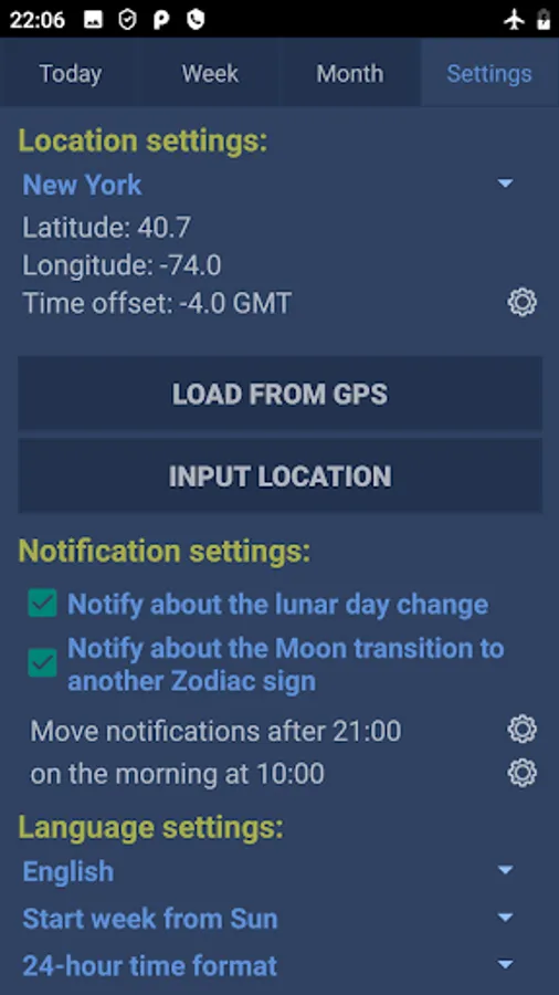 - customizable notifications for the Moon moving into the next Zodiac sign or at the start of a new lunar day