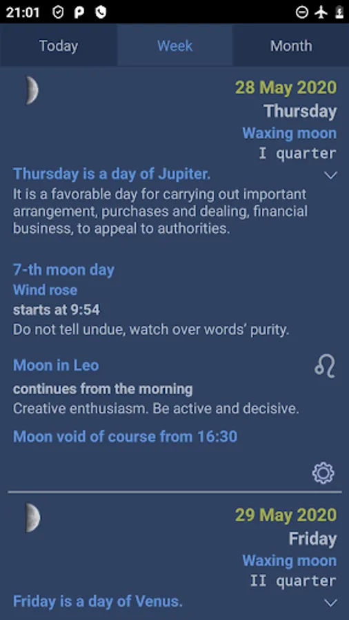 - notifications for the Moon moving into the next Zodiac sign or at the start of a new lunar day
