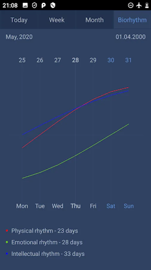 - personalized biorhythms calendar to calculate your physical, emotional and intellectual rhythms according to your birth date