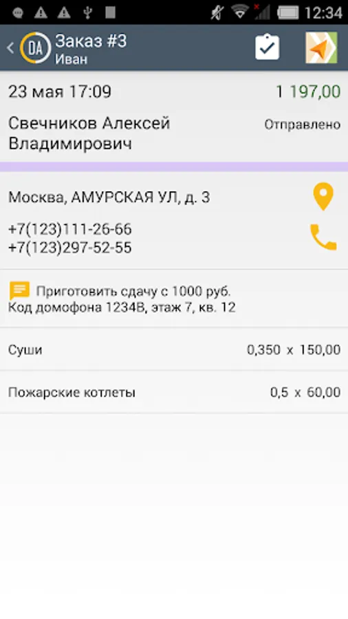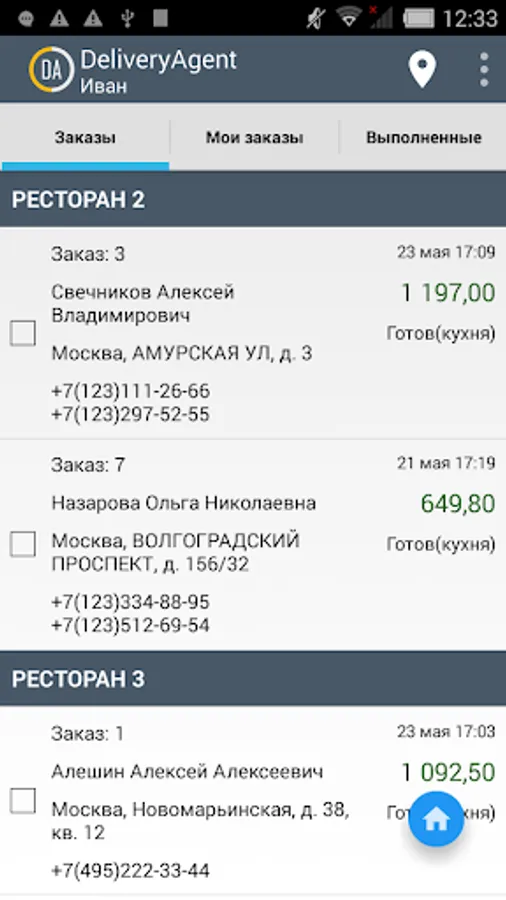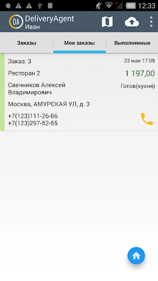 Delivery Agent is a mobile application for automating and controlling the work of delivery couriers. Works in conjunction with all versions of r_keeper Delivery.