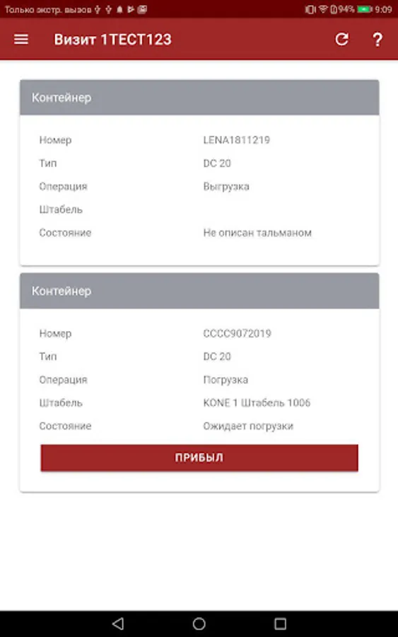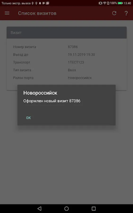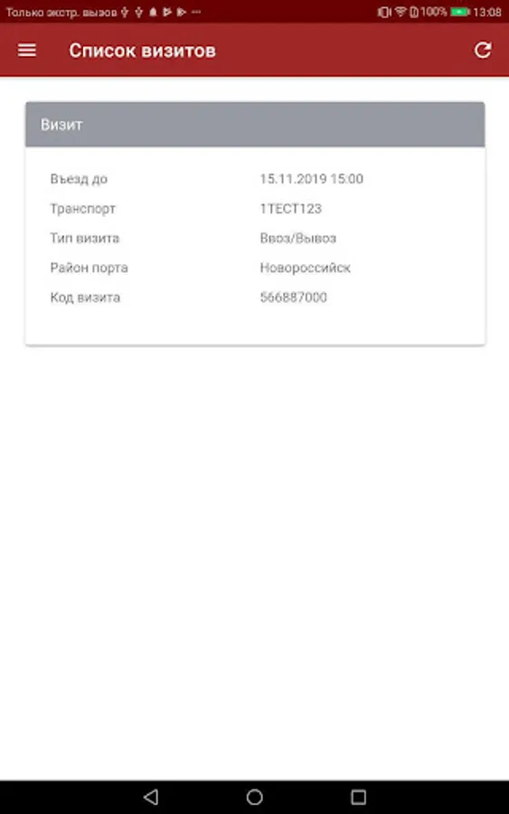 The application automates the actions of the driver at the NUTEP terminal to process the visit of the carrier enterprise.
