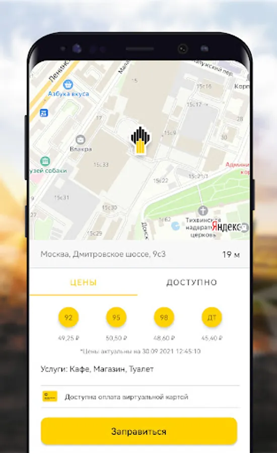 - Find a gas station of NK Rosneft (Rosneft, Bashneft, BP, PTK, TNK) convenient for refueling and build a route.