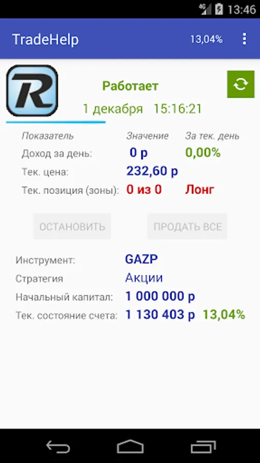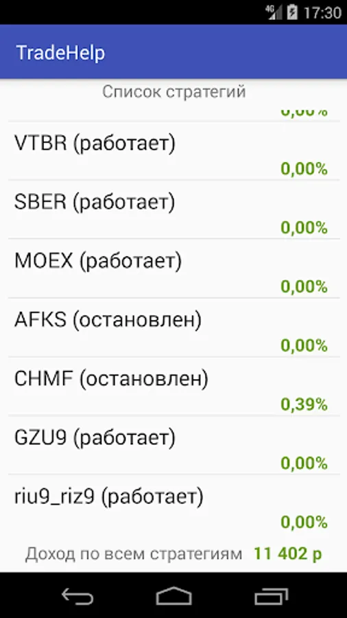 Mobile client for viewing the list of TradeHelp robot trading strategies and their status