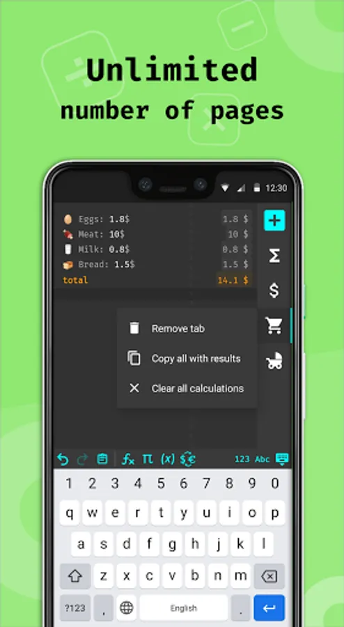 If single page with calculations is not enough for you, you can always add more pages and choose an icon for each to avoid confusion.