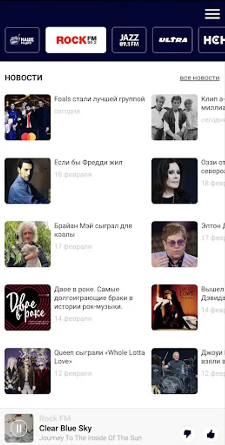 On ROCK FM, hits of world rock stars of different eras are interspersed with current news releases, reviews of the most interesting events in the city, excerpts from the history of rock and copyright programs of influential musicians and journalists.