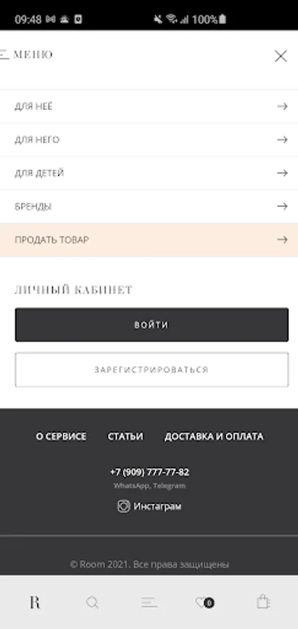 Room is a reselling platform for clothes, shoes, accessories of famous luxury brands. On this trading platform, people can buy branded designer clothes from suppliers (boutiques / private customers) in excellent condition and at a good discount. A private client also has the opportunity to sell their branded item.