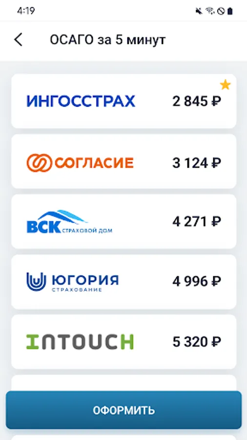 The application has the ability to conveniently and quickly issue an OSAGO policy.