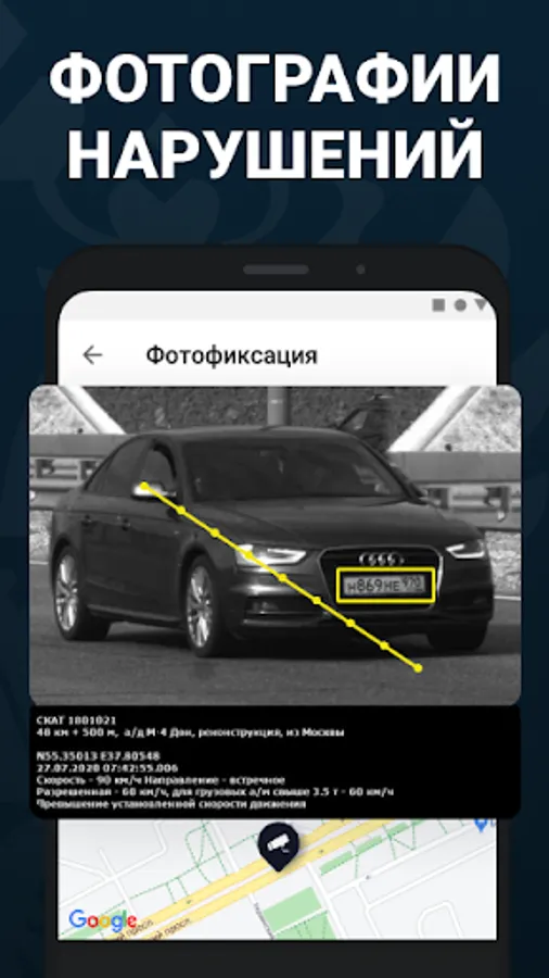 • full details of traffic police fines: with a photo, address, date, indication of a specific violation;