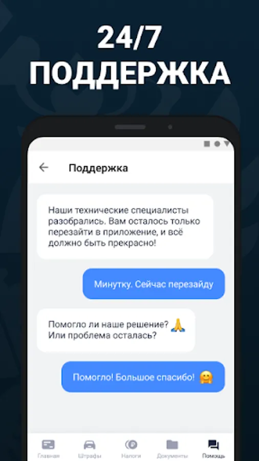 At your service is an application connected to the official databases of the traffic police, GIS GMP, FSSP, DIT. This means that any information on taxes and fines is absolutely reliable.