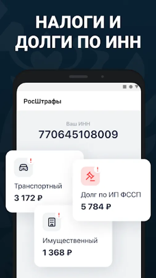 Do you want to always know about your fines, debts and taxes? Do you want to pay them off in a couple of clicks without getting up from the couch? Then install the application right now!