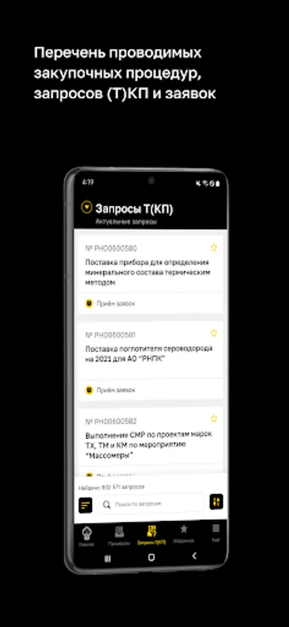 • Ability to form lists of "selected" procurement procedures and / or requests (T) commercial proposal.
