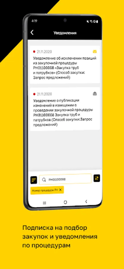 • Possibility of forming collections with information about new posted procurement procedures and requests (T) commercial proposal by key parameters.