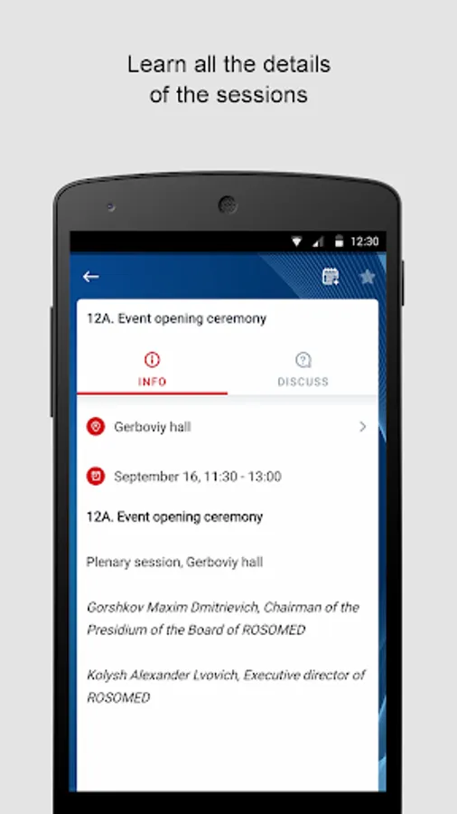 - create your own schedule and receive notifications about the beginning of the selected sessions;