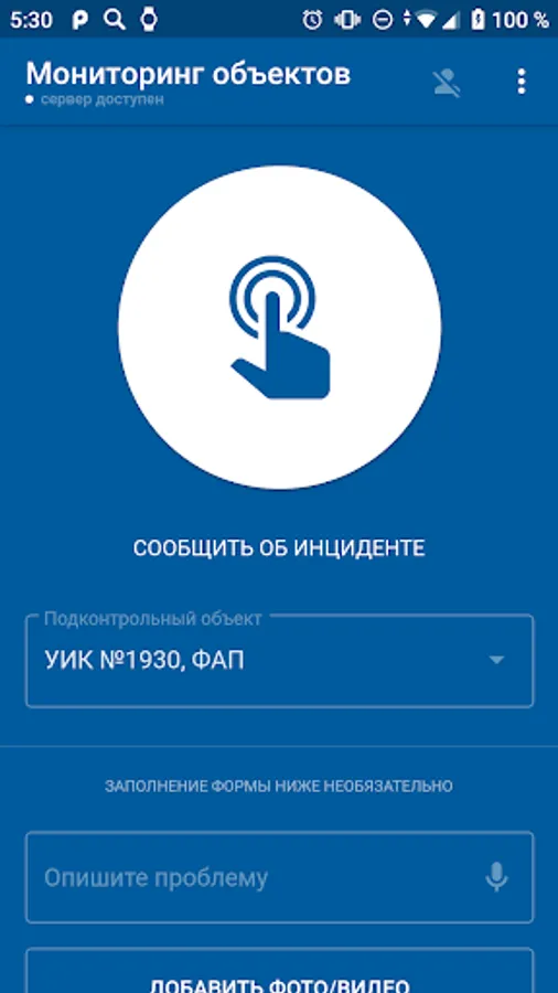 The Objects Monitoring mobile application is part of the unified end-to-end Operational Monitoring System implemented at PJSC Rosseti. This is a tool that allows the appointed (trusted) person in charge to promptly transfer information (in the form of a signal from a mobile application) about the fact of an incident at the controlled object entrusted to him to higher authorities.