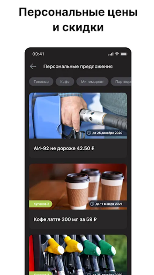 The application allows you to accumulate bonus points for purchasing fuel, store goods, cafe services, car wash, and also provides access to electronic coupons with super discounts and participation in drawings for promotional prizes from the Rostneft gas station network.