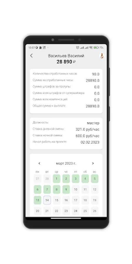 Accounting for the working time of employees of the organization with the ability to edit shifts and credentials of employees.
