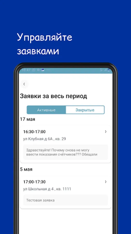 The application is intended for employees of the MC "ASI-Housing and Public Utilities". Using the application, an employee has the ability to notify the dispatcher about the execution of orders and create them on his own, chat with the owners, track his rating.