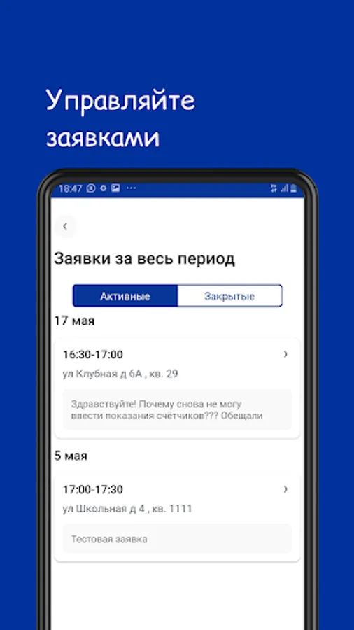 The application is intended for employees of "Zhilstroyservis". Using the application, the employee has the opportunity to notify the dispatcher about the fulfillment of applications and create them on his own, chat with the owners, and track his rating.