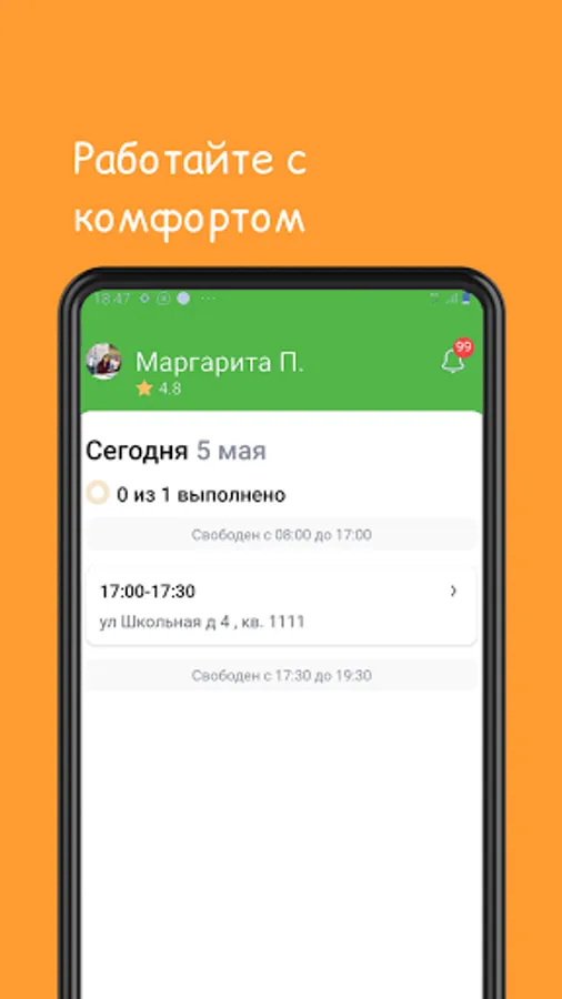 The application is intended for employees of the Sibirskie Prostory company. Using the application, an employee has the ability to notify the dispatcher about the execution of orders and create them on his own, chat with the owners, track his rating.