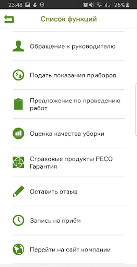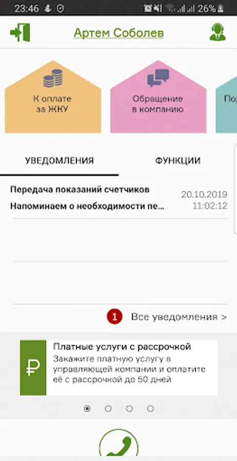 The application provides a simplified procedure for the interaction of the owner with the management company "Ulland." Using the application, the owner has the opportunity to go through the apartment with a telephone, record and transmit the readings of individual metering devices, photograph the problem and send the photo to the management company in the form of an application, leave a review and appeal to any division of the company.