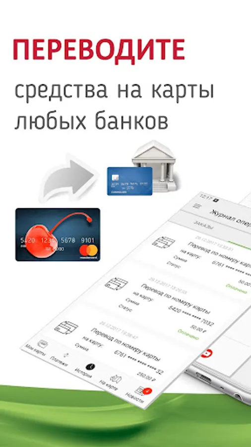 • transfer money to their cards and cards of your friends, relatives, acquaintances.