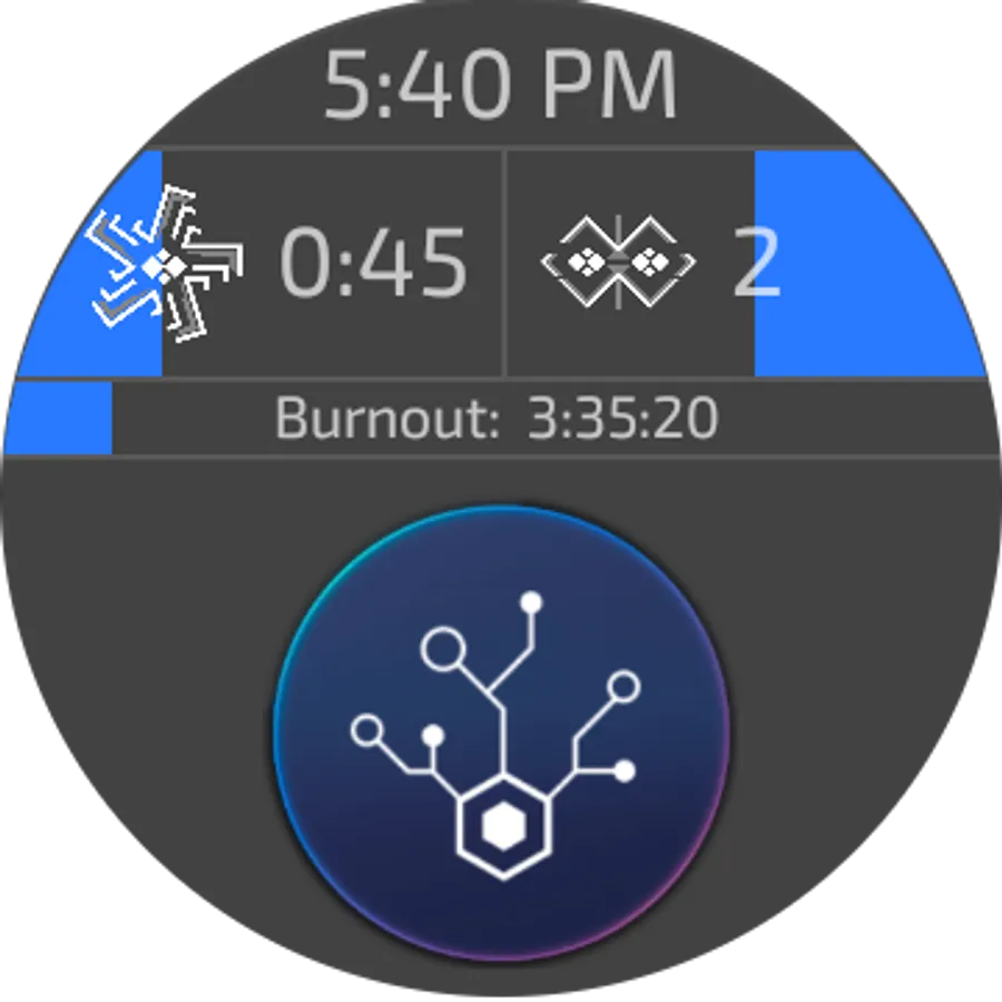 Works on Wear OS devices (Android Wear 2.x). It has a watchface optimized for devices with a round screen, and for square, and a farm timer. Tap on the watchface will open the farm timer. The timer can count the cooldown between hacks, the burnout and the number of remaining hacks in accordance with the mods set in the settings. Swipe the timer up (return to the timers, respectively, swipe down). Installing any heat-sink will reset all counters, as in the game itself. At the end of the period of cooldown and burnout, you will be notified by the vibration of the wearable device.