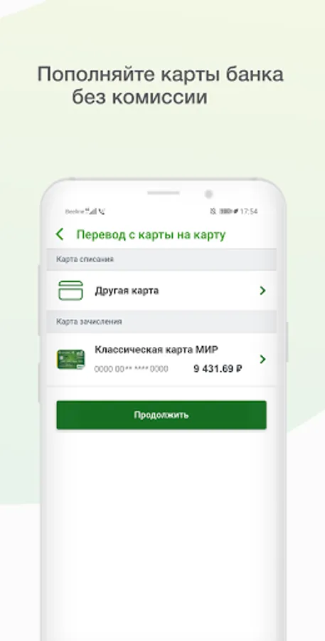 • Transfers from card to card, incl. transfers from cards of other banks without commission;