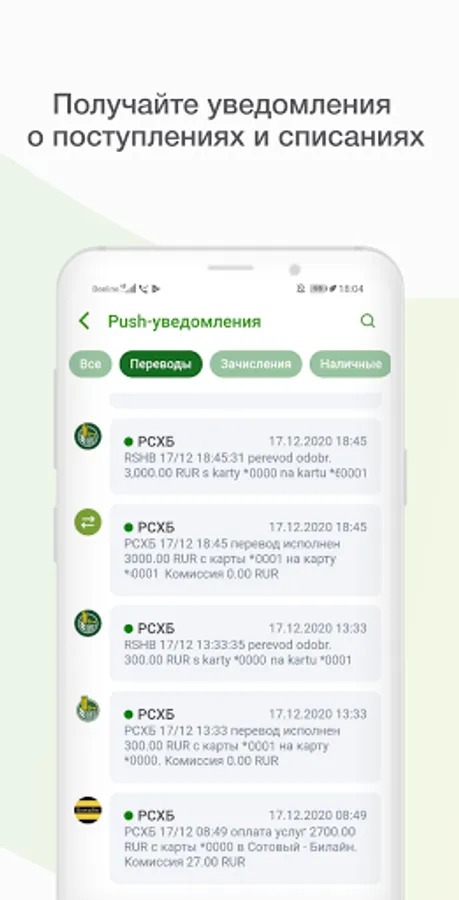 • Transfers between your accounts, other RSHB clients, as well as to other banks;