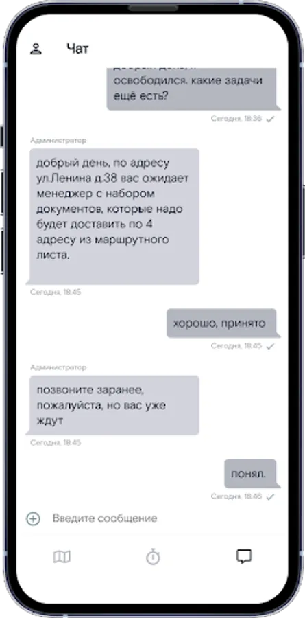 The application helps to work with tasks from the dispatcher, as well as plan the working day for a traveling employee.