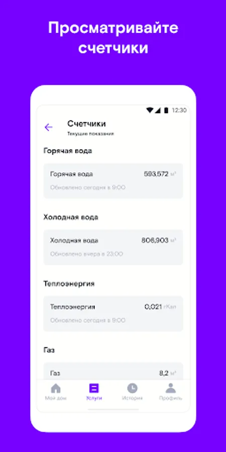 - Smart meters will automatically take and transmit the readings of water, heat and electricity meters to the management organization. The mobile application will provide information on the current meter readings and statistics on resource consumption.