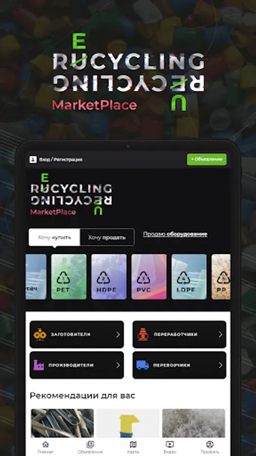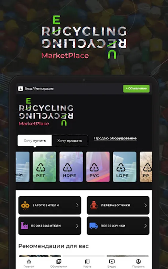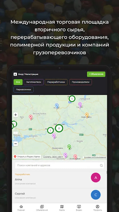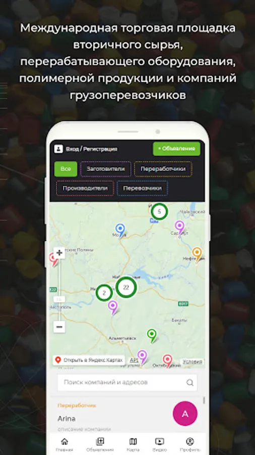 International trading platform for secondary raw materials, processing equipment, polymer products and freight forwarding companies.