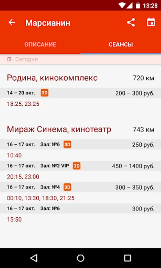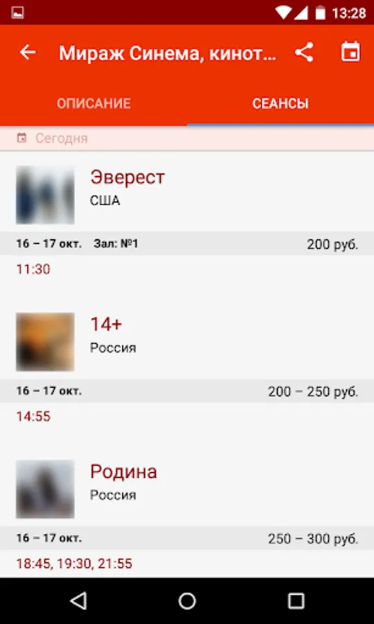 - Watch schedules cinemas, theaters, concerts, clubs, exhibitions, tours, excursions and city events;