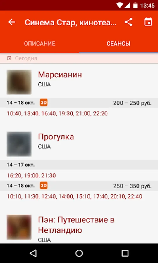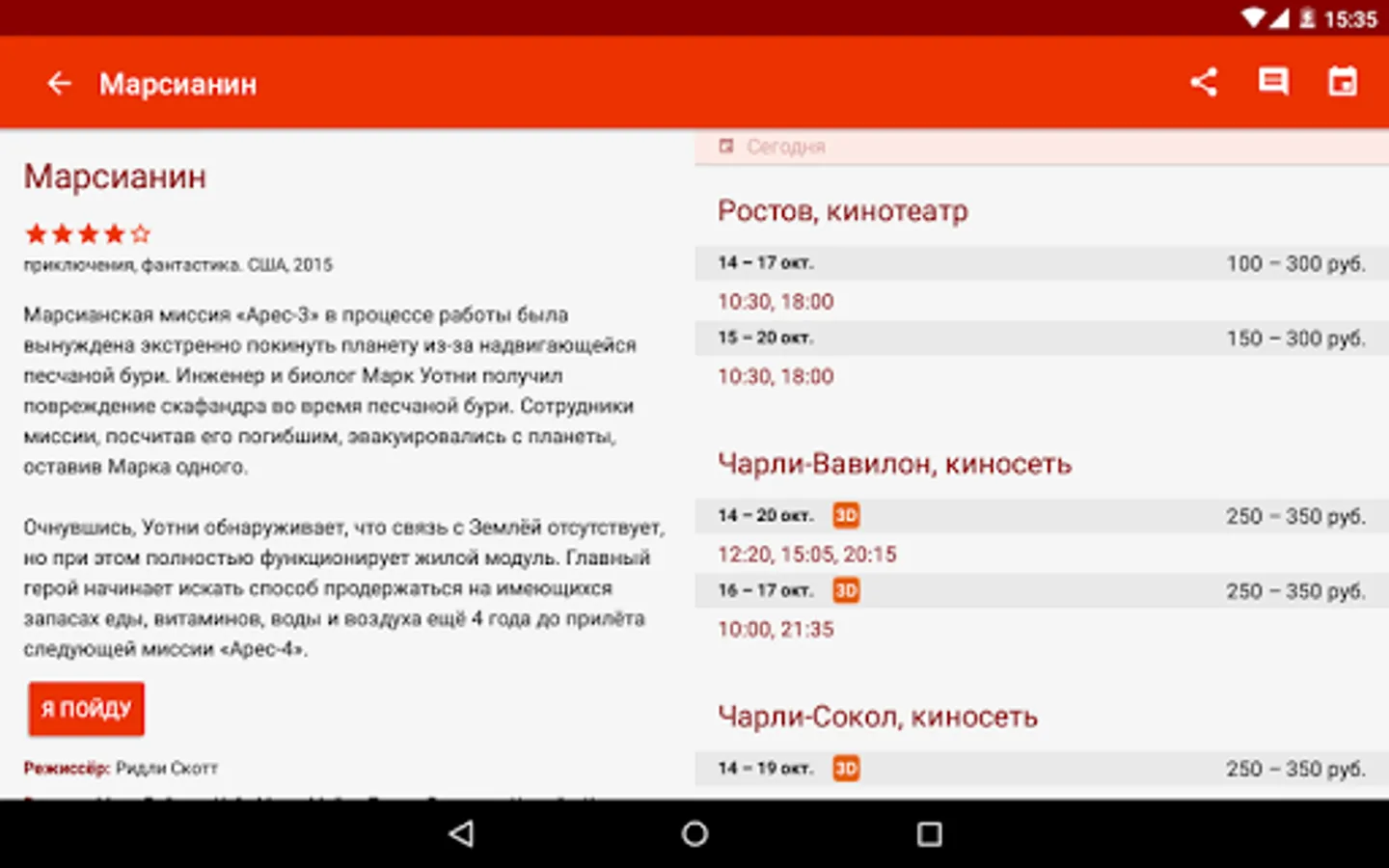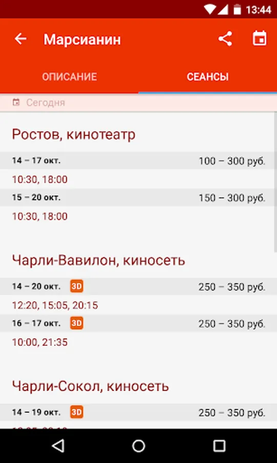 - Watch schedules cinemas, theaters, concerts, clubs, exhibitions, tours, excursions and city events;